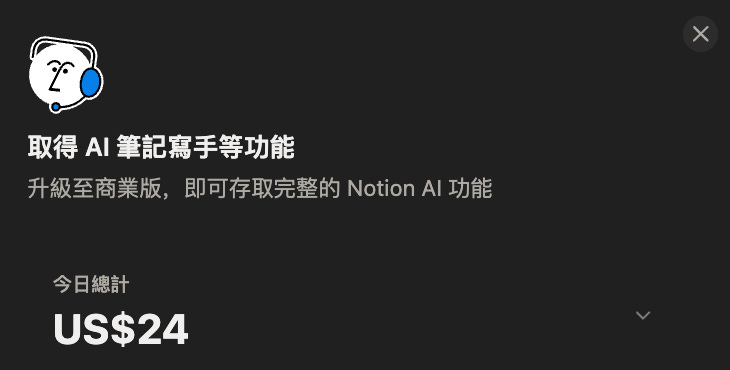 於是我很快就把免費試用額度用完了,在爽爽的要刷卡之際,發現 Notion AI 高貴很貴!!