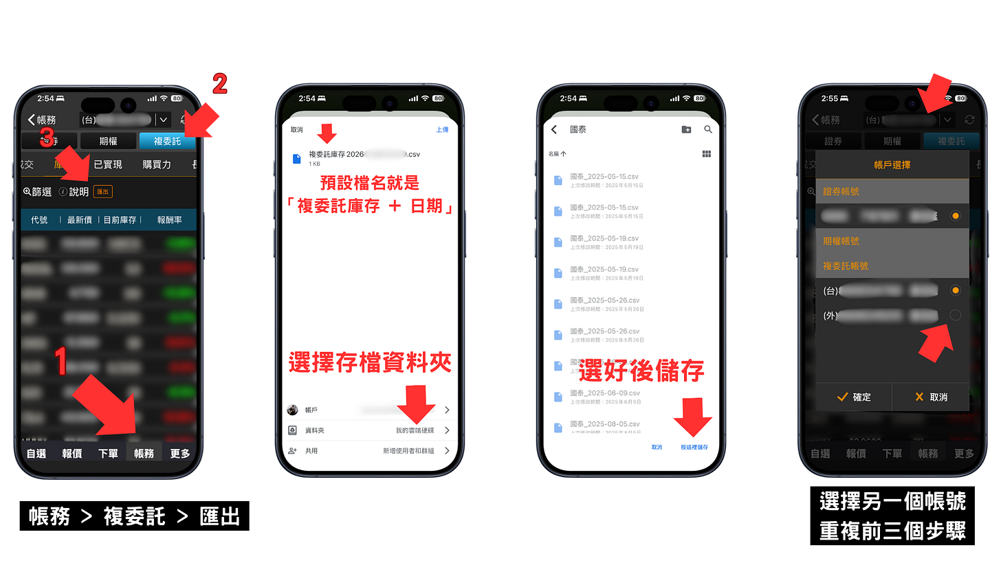 你可以看到預設的檔名就是「複委託庫存 + 日期」,所以前面在搜尋雲端的時候才會指定要找名稱有「複委託庫存」的檔案