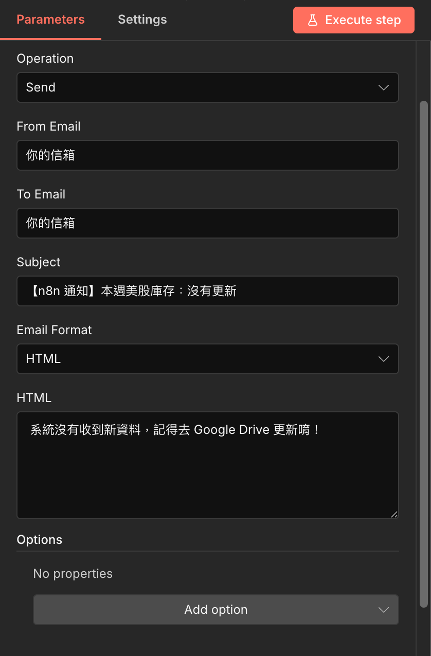 執行成功 Send Email:當初不知道哪根筋不對,把成功通知放在這,總之它能跑⋯⋯