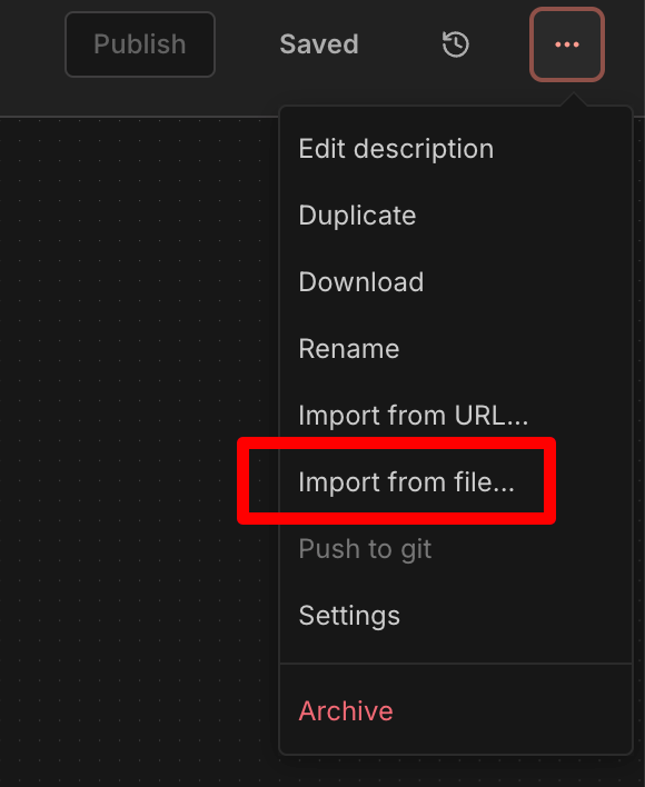 接下來我們逐個步驟來操作吧!首先點擊右上角「Import from file」匯入模板: