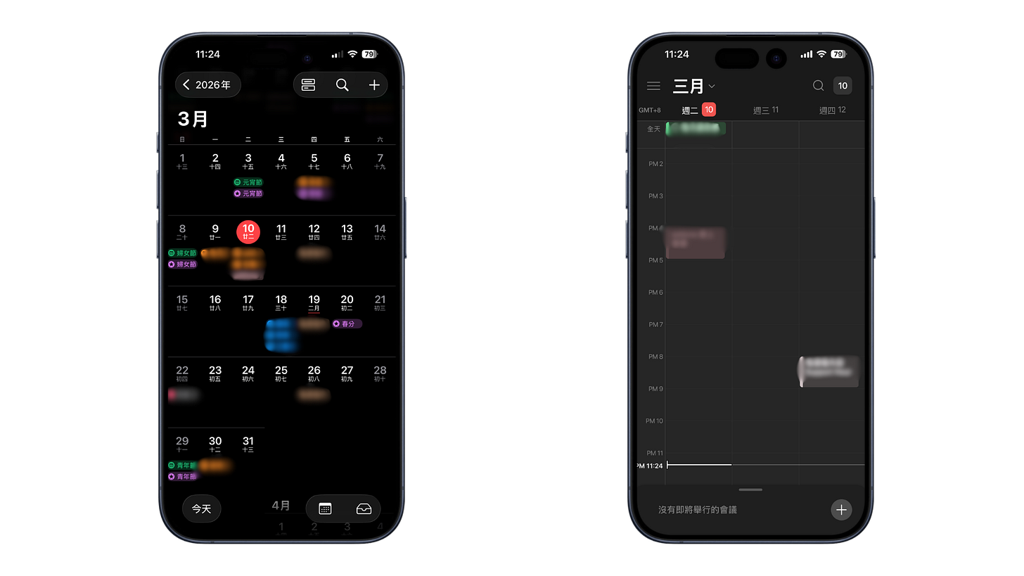 今天要跟你分享的是,一件我抱怨很久的事,我習慣使用 Apple 行事曆跟同事共享工作日程,它的手機介面跟小工具非常好用,但我個人又習慣把所有東西都放在 Notion 上管理