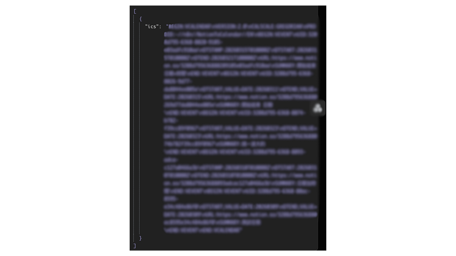 功用:將上一步整理好的清單,依照國際標準的 iCalendar (ICS) 格式拼湊起來