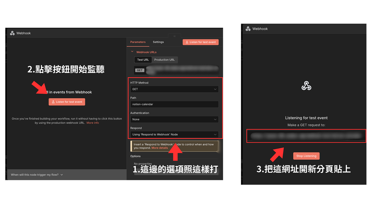 今天的關鍵是 Webhook 跟 Respond to Webhook,這兩個節點就像是一扇門的「入口」與「出口」,讓外部軟體(如 Google Calendar、Apple 行事曆)可以跟你的 n8n 通訊。