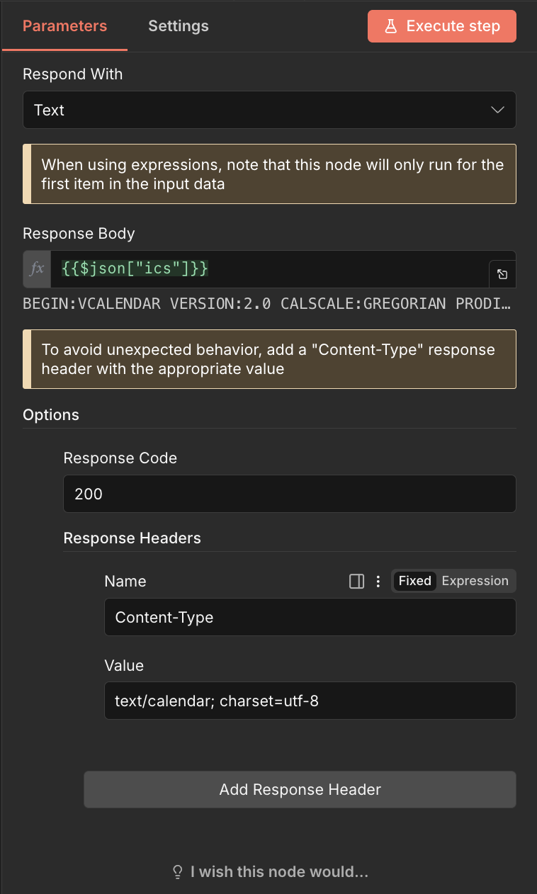 功用:把最後拼湊好的 ICS 字串回傳給發起請求的人