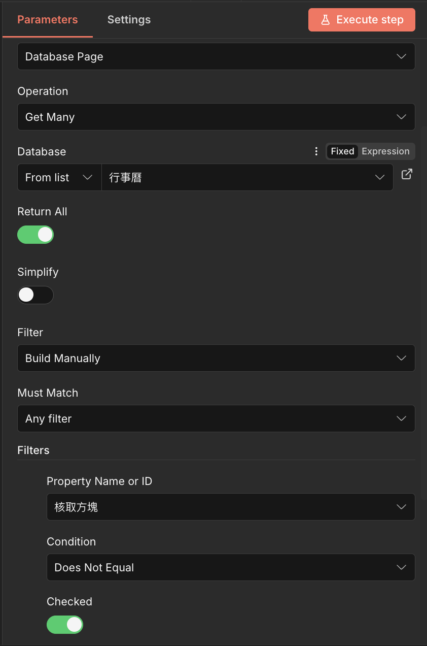 關鍵動作:這裡通常會設定 Filter(篩選器),只抓取「不等於已經勾選」(也就是未勾選)的頁面,確保不會出現已經完成的任務